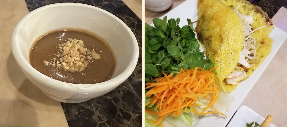 Pho Gia Vi features a variety of Vietnamese dishes. The star is the phở, including beef options like Pho Tai Chin and Pho Tai Nam. Vegetarian dishes are also available, like Spicy Lemongrass Tofu.